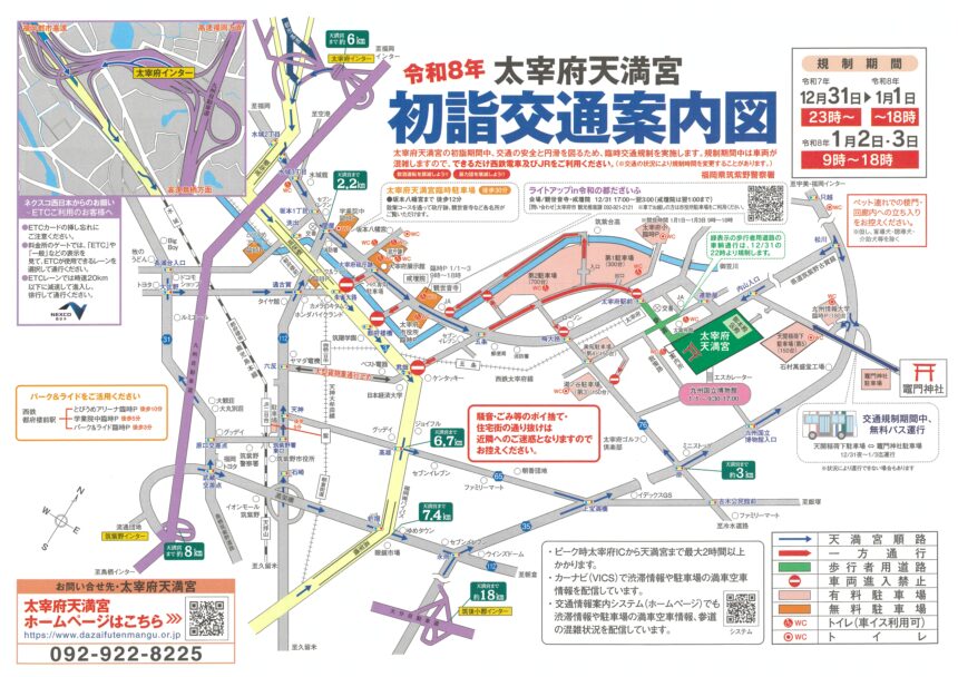 12月31日(水) 23時~1月3日(土)、臨時交通規制が実施されます。車両混雑が予想されます。
