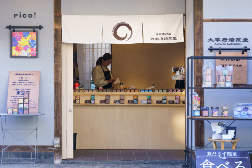 黒豆珈琲・食べる黒豆茶・釜炊き甘納豆・焼きかりんとうなど…九州産こだわりの逸品をお土産・贈り物に。黒豆茶は試飲もできます。新発売のわんにゃん黒豆茶も!お店の横にはわんちゃん用の試飲スポットもありますので、ぜひお立ち寄りください。
