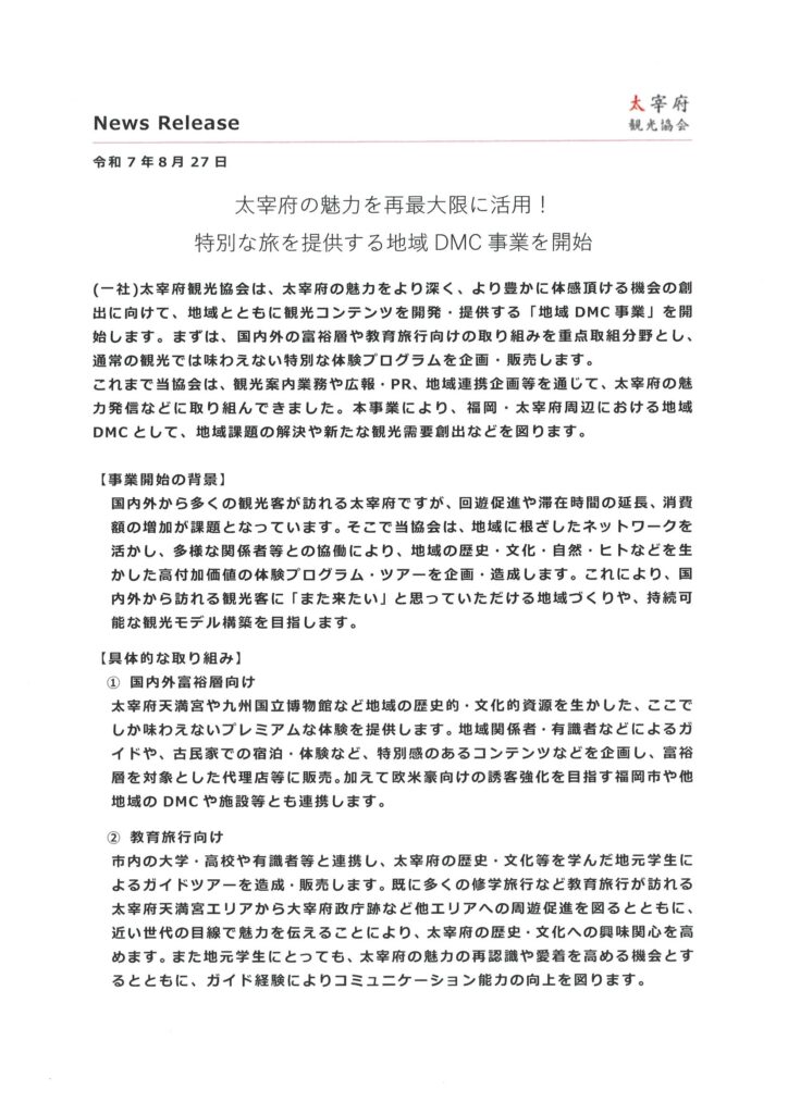 特別な旅を提供する地域DMC事業を開始します