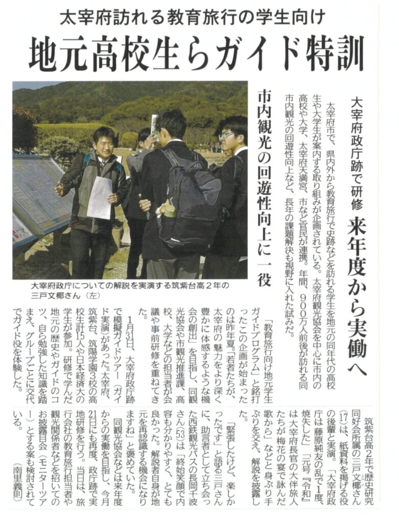 初年度となる今年はガイド研修を実施し、研修の様子は西日本新聞などで紹介されました。